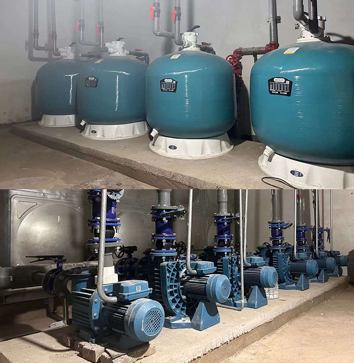 其中,AQUA愛克泳池水泵、泳池過濾砂缸構(gòu)成的泳池循環(huán)過濾系統(tǒng),在整個(gè)項(xiàng)目中對泳池水進(jìn)行循環(huán)過濾,具有保持泳池水循環(huán)和凈化的作用。