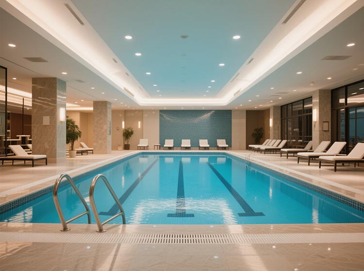 山東濱州市某高檔小區(qū)配備的先進(jìn)泳池處理設(shè)備,涵蓋了水質(zhì)凈化、溫度與濕度控制,以及淋浴用水供應(yīng)等多個(gè)方面,全方位為居民營造了一個(gè)健康、舒適的游泳環(huán)境。這不僅彰顯了小區(qū)對(duì)居民健康生活需求的深切關(guān)懷,更在提升居民生活品質(zhì)、引領(lǐng)健康生活新風(fēng)尚方面做出了積極貢獻(xiàn)。在這里,居民們?cè)跁秤沃?,深刻體驗(yàn)到科技與健康生活的完美融合,盡享現(xiàn)代高品質(zhì)社區(qū)的獨(dú)特魅力。此外,這一實(shí)踐也為其他社區(qū)的泳池建設(shè)提供了寶貴的借鑒。