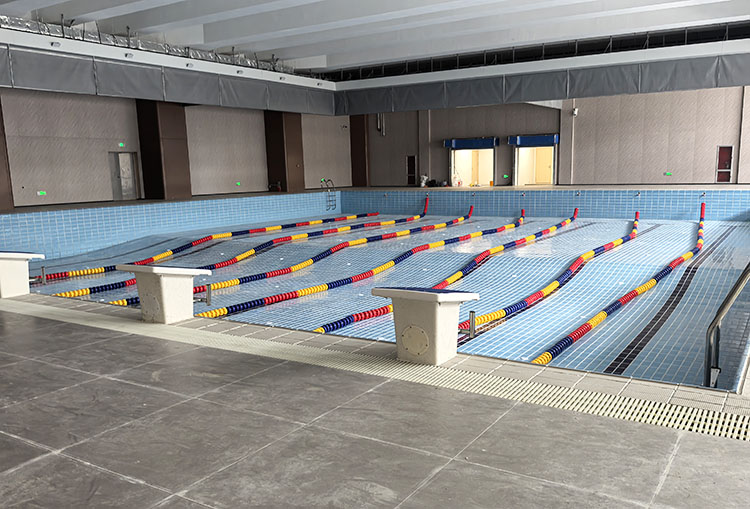 與此同時(shí),三集一體除濕熱泵集除濕、恒溫、通風(fēng)等功能于一身,通過(guò)回收池水表面蒸發(fā)的熱損失,將其重新用于維持水溫和空氣溫度,在高效除濕的同時(shí)保持環(huán)境舒適。該系統(tǒng)可將濕度穩(wěn)定在50%–75%的人體舒適區(qū)間,室溫維持在27–30℃,水溫控制在26–28℃,有效防止玻璃結(jié)露和建筑結(jié)構(gòu)腐蝕,相比傳統(tǒng)電加熱或鍋爐方式節(jié)能40%–60%,為師生活動(dòng)提供了干爽清新的空間。