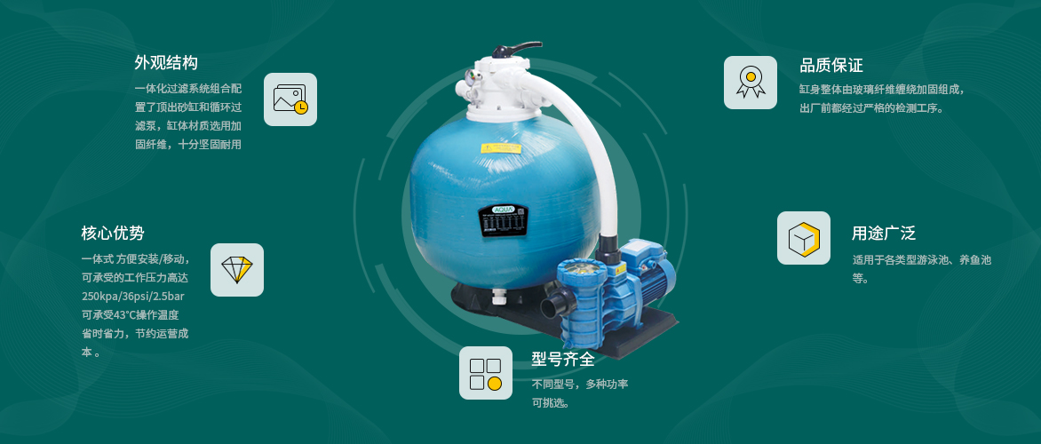 一體砂缸過濾組合,抗壓精濾,經濟耐用
