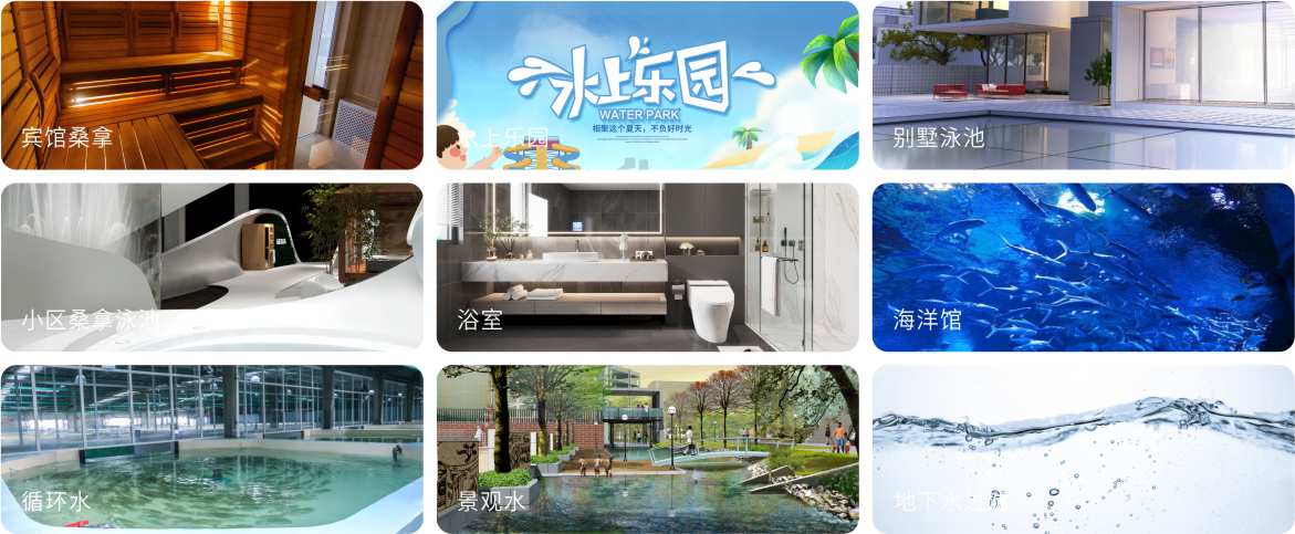 適用于各類型泳池、水療池、景觀池、水上樂園、水產(chǎn)養(yǎng)殖等場所使用。