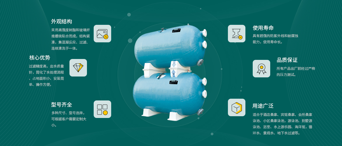 AQUA愛克雙層臥式過濾砂缸品質優(yōu)異的玻璃纖維樹脂制作成型,密度高,厚薄均勻,纏繞緊密,堅固耐用,石英砂濾料不流失,降低維護費。