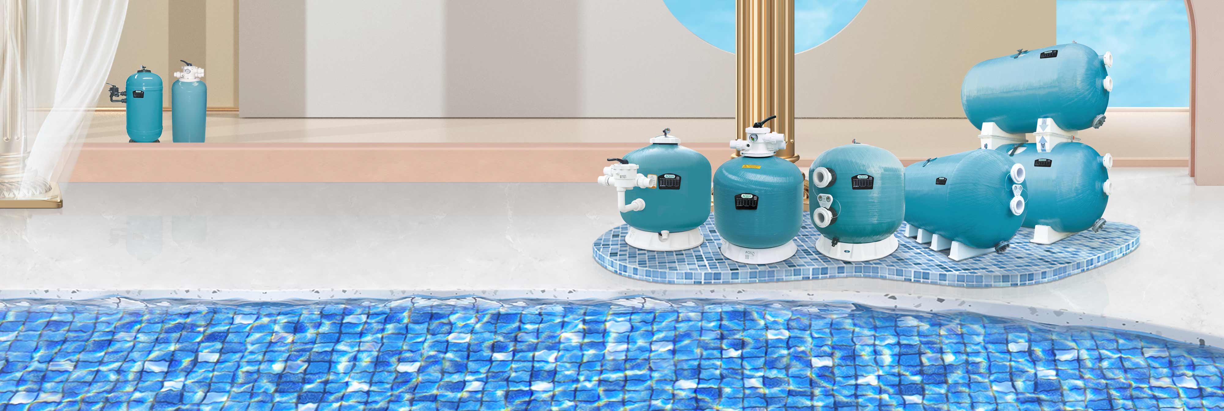 AQUA愛克泳池設(shè)備旗下深層砂缸過濾精度高,過濾效果好。