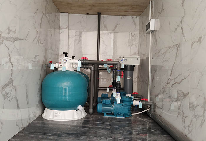 據(jù)悉,該泳池的循環(huán)過濾消毒系統(tǒng)主要由知名泳池設(shè)備品牌AQUA愛克提供。具體由AQUA愛克泳池水泵、泳池過濾砂缸、汞齊紫外線殺菌器三款泳池設(shè)備構(gòu)成,幫助業(yè)主實現(xiàn)泳池泳池水處理、循環(huán)過濾、消毒殺菌等目的。